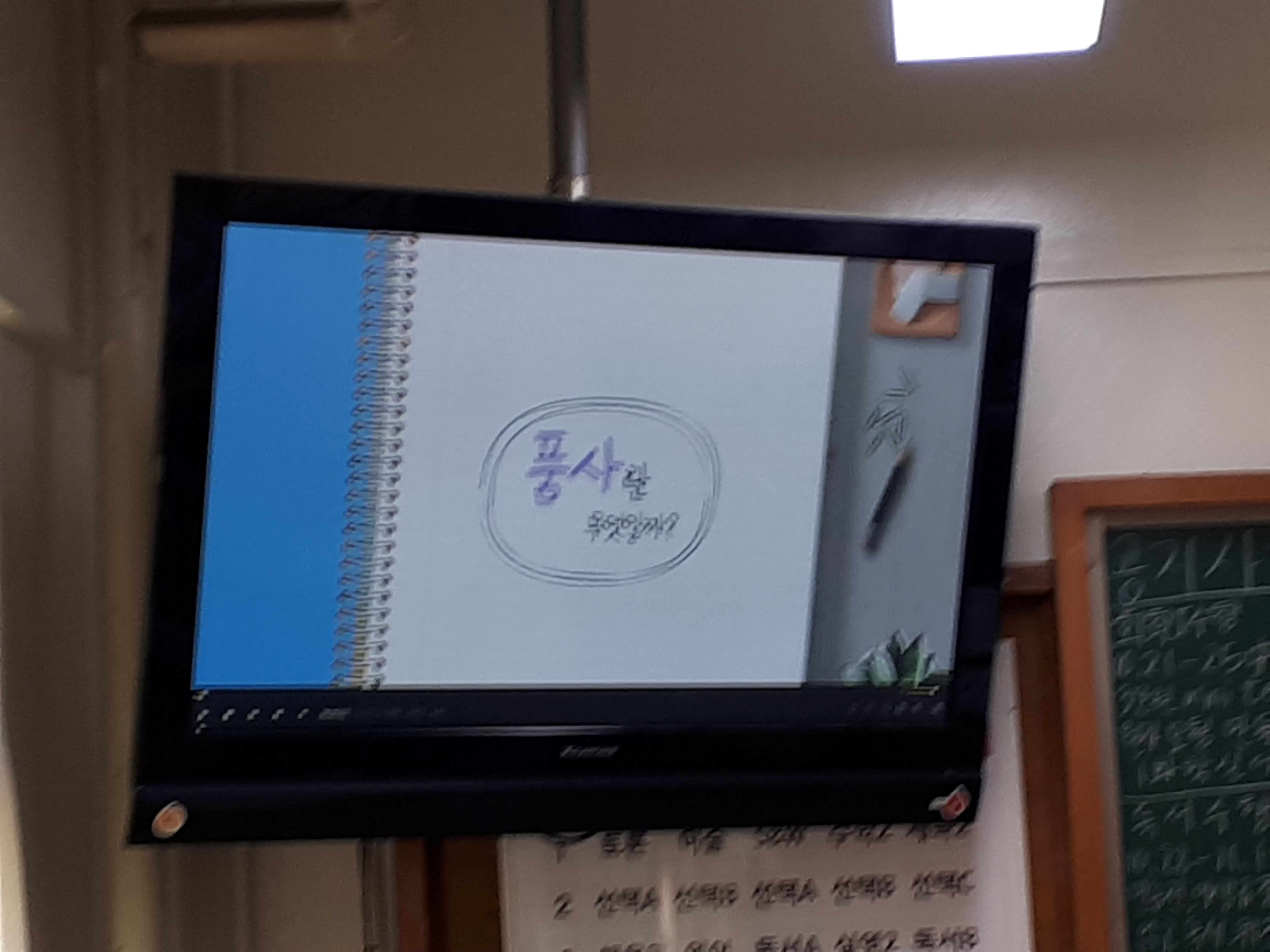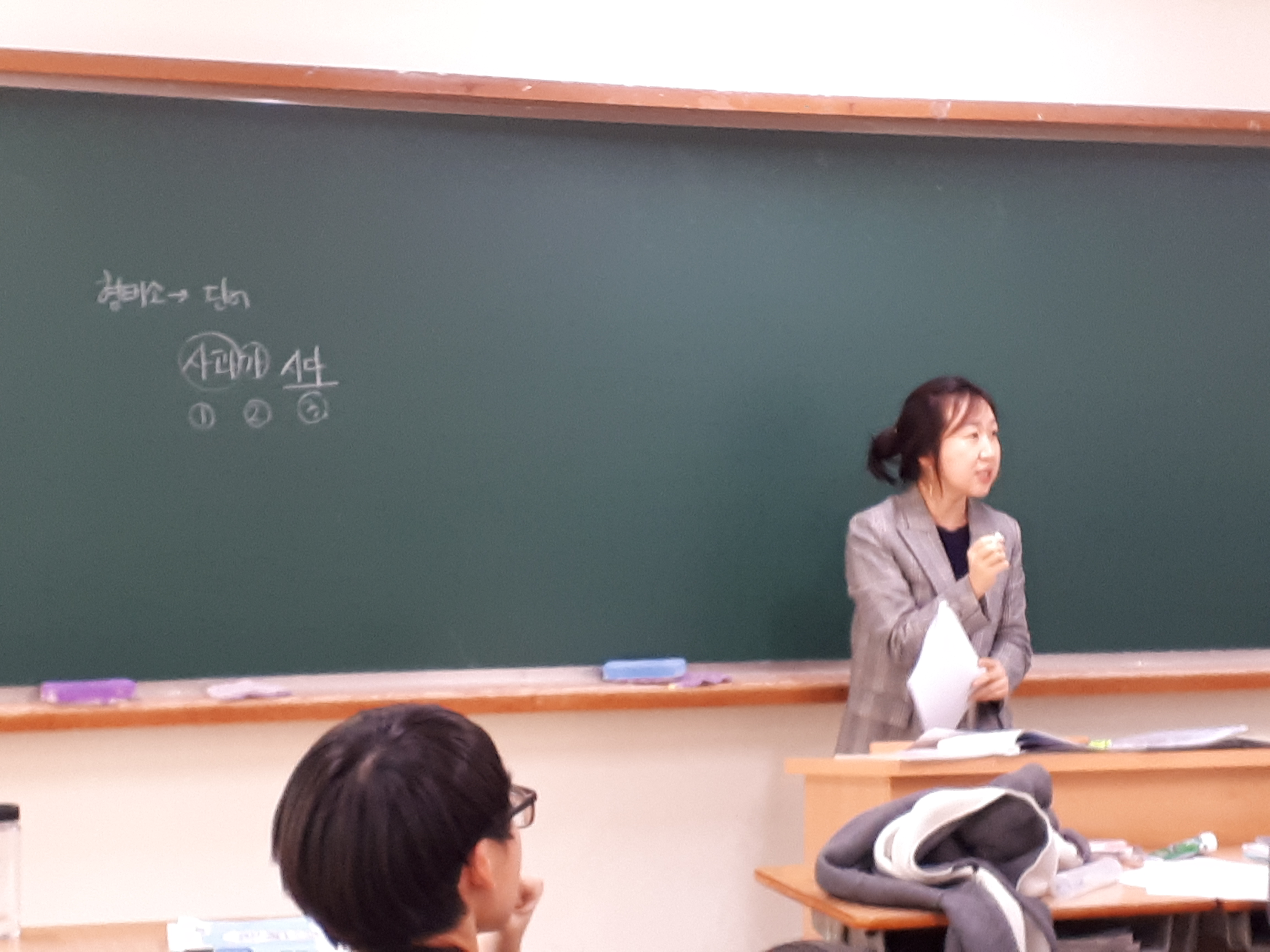 10¿ù22ÀÏ(È) 5±³½Ã 2Çгâ 12¹Ý¿¡¼ ¾ç¼ö¾Æ ¼±»ý´ÔÀÇ µ¶¼ °ø°³¼ö¾÷ÀÌ ½Ç½ÃµÇ¾ú½À´Ï´Ù. 'ǰ»çÀÇ °³³ä°ú ºÐ·ù ±âÁØ'À̶ó´Â ¹®¹ý ÁÖÁ¦¸¦ °¡Áö°í ¼ö¾÷À» ÁøÇàÇϼ̴µ¥, °³³ä¾î¸¦ ÃÖ´ëÇÑ ÀÚ¼¼ÇÏ°Ô Ç®ÀÌÇϼż ÇлýµéÀÇ ÀÌÇØ¸¦ µ½°í, ÇнÀÇÑ ³»¿ëÀ» ¼±»ý´Ô²²¼ Á÷Á¢ ¸¸µå½Å µ¿¿µ»óÀ» ÅëÇØ °ð¹Ù·Î º¹½ÀÀ» ½ÃŰ´Â ¼ö¾÷ °èȹÀÌ µ¸º¸¿´½À´Ï´Ù. ÀÌ·± ³ë·ÂÀ» ÅëÇØ ÇлýµéÀº Æò¼Ò ¾î·Á¿öÇÏ´Â ¹®¹ý Áö½ÄÀ» Èï¹ÌÀÖ°Ô ¹è¿ï ¼ö ÀÖ¾ú´ø °Í °°½À´Ï´Ù. ¾Æ·¡´Â ´çÀÏ ¼ö¾÷ »çÁøÀÔ´Ï´Ù.^^