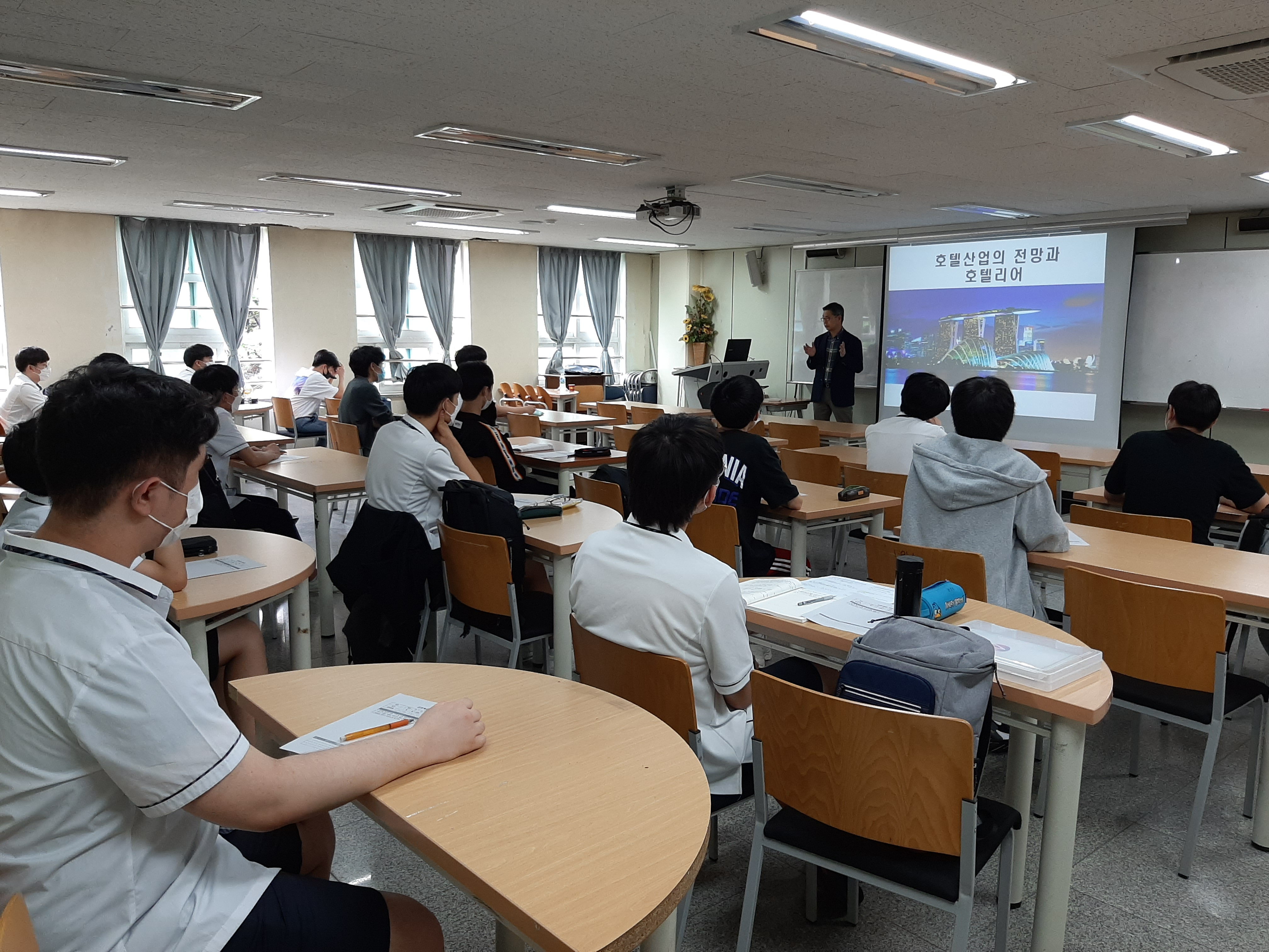 2020³â 7¿ù 1ÀÏ(¼ö) 15:20 ~ 16:00 º»±³ »çȸ°ú ±³½Ç¿¡¼ ¿ì¸®Çб³ 1,2,3Çгâ 30¿©¸íÀÇ ÇлýµéÀÌ Âü¿©ÇÑ °¡¿îµ¥ °æÁÖ´ëÇб³ È£ÅÚ °ü±¤°æ¿µÇаú ÀÌ»óÀç ±³¼ö´ÔÀ» ¸ð½Ã°í ‘È£ÅÚ »ê¾÷ÀÇ Àü¸Á°ú È£ÅÚ¸®¾î’ ¶ó´Â ÁÖÁ¦·Î Áø·ÎƯ°ÀÌ ÀÖ¾ú½À´Ï´Ù. Ãֱ٠ȣÅÚ»ê¾÷ÀÇ Æ®·»µå¿Í Àü¸Á¿¡ ´ëÇØ ¾Ë¾Æº¸°í, È£Åڰ濵ÇаúÀÇ Àü°ø°ú Á¹¾÷ ÈÄÀÇ Áø·Î, È£ÅÚ¸®¾î¶ó´Â Á÷¾÷ÀÇ ¼¼°è¿¡ ´ëÇØ ¸é¹ÐÈ÷ »ìÆìº¸¾Ò½À´Ï´Ù. ²÷ÀÓ¾ø´Â Áú¹®°ú È£ÀÀÀ¸·Î ¿Á¤ÀûÀÎ Áø·ÎŽ»öÀÇ ½Ã°£À» °¡Á³½À´Ï´Ù.